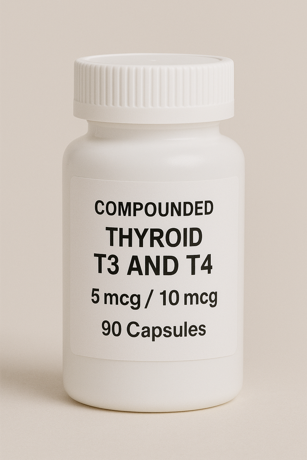 Custom T3/T4 thyroid hormone preparations, often lactose-free or oil-based. Used when standard commercial formulations aren’t tolerated.
